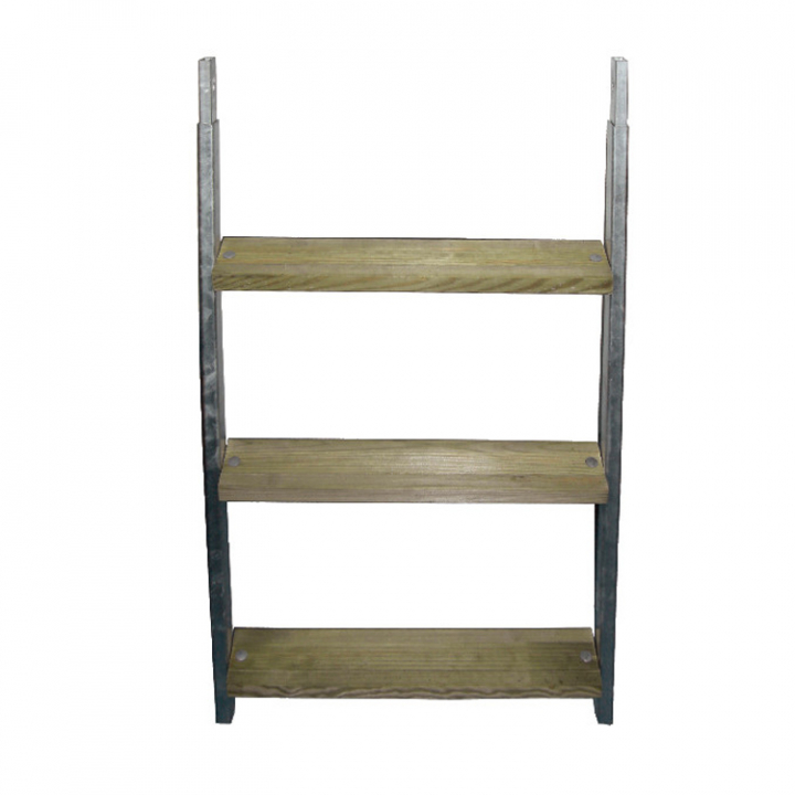 Ramen är tillverkad i varmgalvaniserat stål och fotstegen är gjorda av trä.