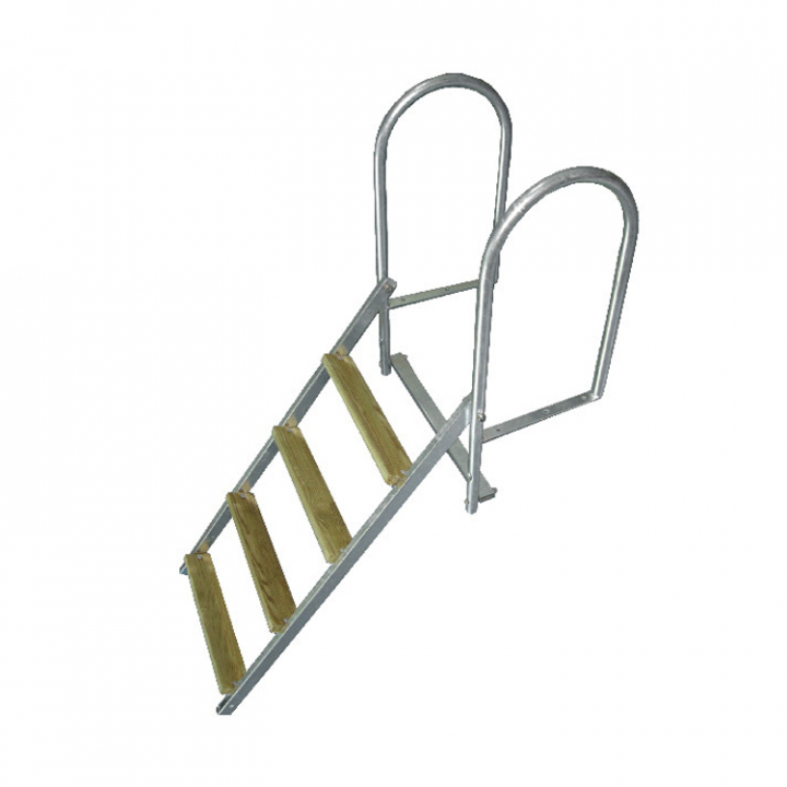Fällbar bryggstege med 4 fotsteg av trä. Ramen är gjord av varmgalvaniserat stål.