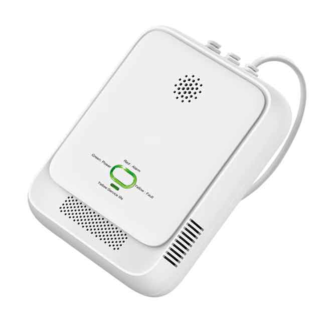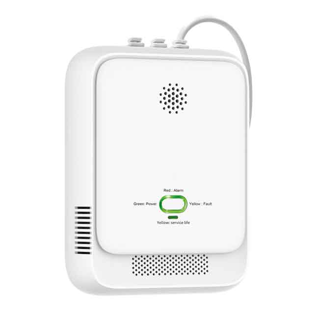 Denna enhet drivs av 12V och levereras med en 1,5 meter lång sladd för flexibel montering. Den reagerar snabbt och har en svarstid på mindre än 30 sekunder. Den ger tydlig varning med både ett högt ljudlarm (85 dB) och visuella signaler.