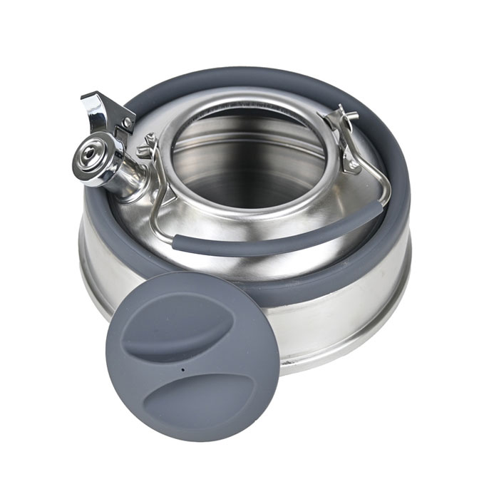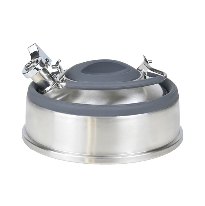 Smart hopfällbar visselkittel med en kapacitet på 2 liter, perfekt för dig som vill spara plats i köket eller på resan. Tillverkad i rostfritt stål och värmetålig silikon. Alla material är godkända för livsmedel. Den kompakta designen gör den enkel att förvara när den inte används. Idealisk för camping, båtliv eller små kök.
