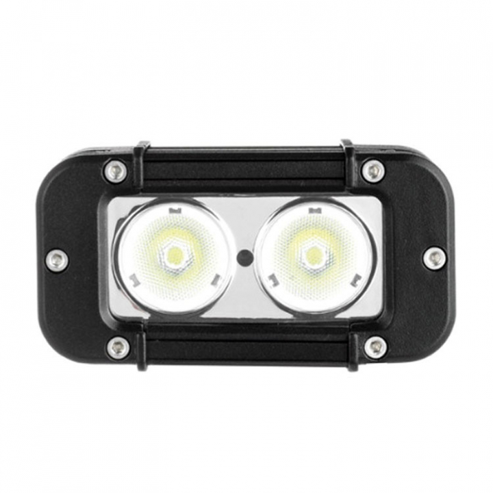 Arbetsbelysning i en kompakt design med 2x10 watt LED-lampa, vilket ger ca. 1350 lumen i ljusflöde. Lampan är tillverkad av vattentät (IP67) svart plast med rostfri hållare. - Egenskaper