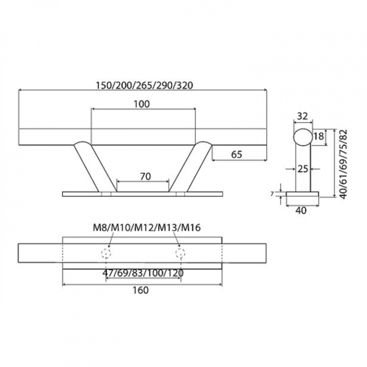 Rostfri pollare, gänga i monteringsplattan. Underlagsplattor/Monteringsplattor för dessa hittar du här.