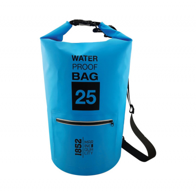 Vattentät väska med axelrem och extra främre fack med vattentät dragkedja. Det är alltid bra att ha en vattentät rollup-väska där man kan förvara extra kläder, filtar eller annat som man vill skydda från elementen.