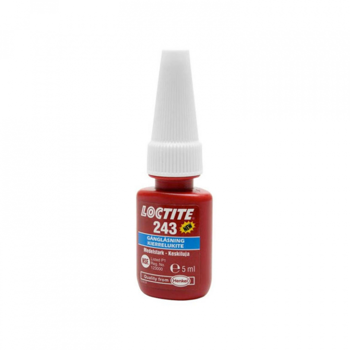 Loctite 243 gänglåsning med medelhög styrka. Lämplig för låsning av 1/4″ NPT gängor i hydraul pumpar och cylindrar.