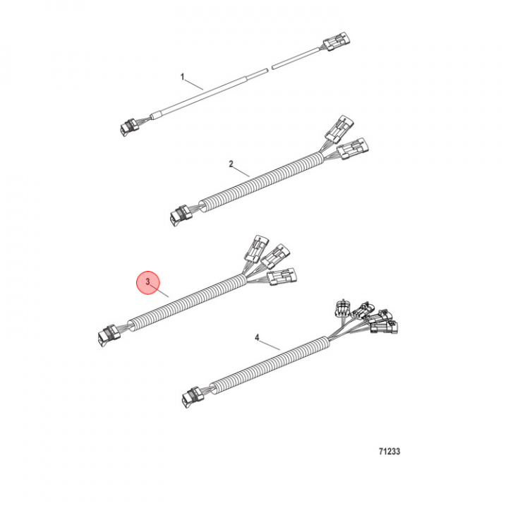 Adapterkabel (892868T02) till signalkabeln för servostyrning när du har trippelmontage. Titta i din epc för att säkerställa att delen passar just din motor.