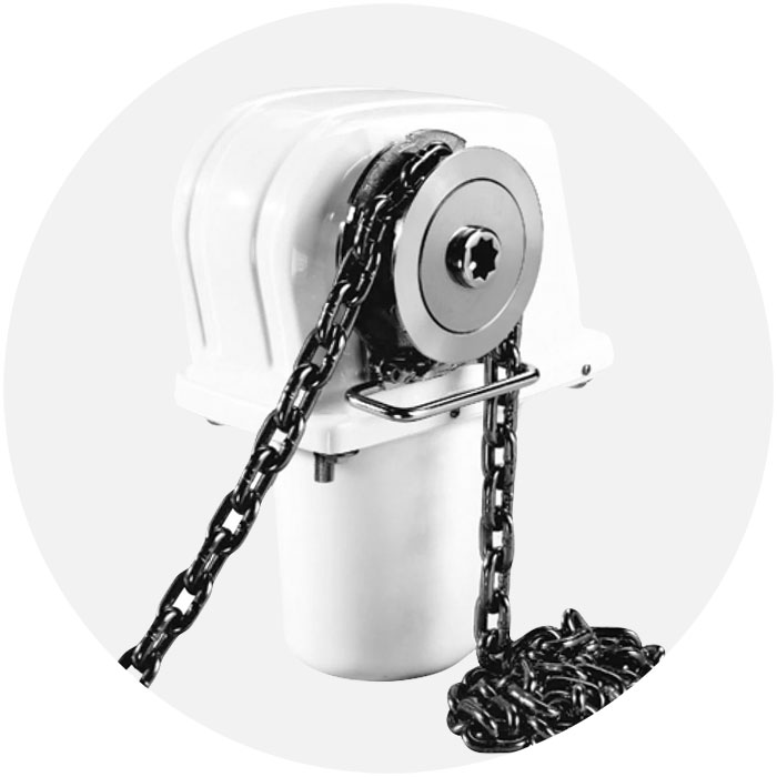 Rätt lina/kätting som är tillräckligt kraftig för vikten på din båt. Side-Power ankarspel använder 16 mm blyad lina till båtar över 3 ton och 12 mm blyad lina till båtar under 3 ton.