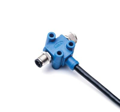 NMEA 2000 T-koppling med anslutningskabel till 12V från Amphenol. Används för strömförsörjning av nätverk.