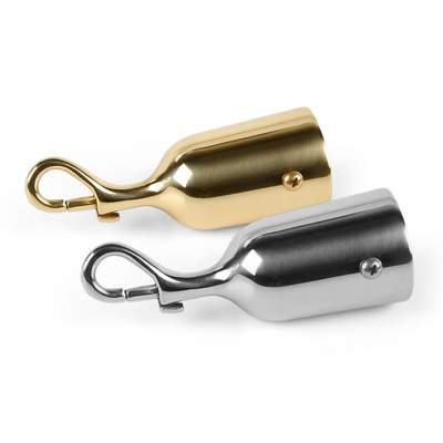Ändbeslag med fjäderkrok/pistolhake till trappräckslina 36mm, finns i mässing och krom.