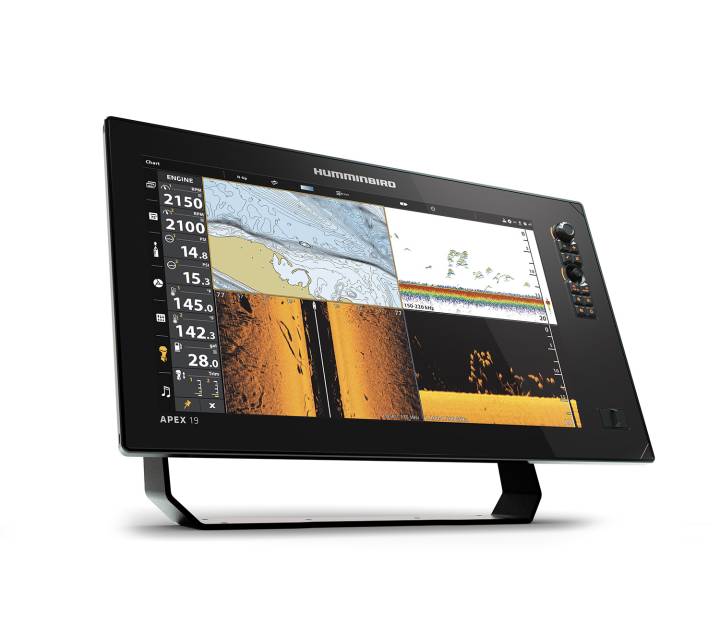 Humminbird APEX 19 med Dual Core processor, FULL HD touch-skärm på 18,5 tum med 1500 Nits, lågprofils-design, MEGA Imaging+, Dual Spectrum CHIRP samt Dual Channel CHIRP Sonar som ger stöd för dubbla ekolodsgivare med en 2D effekt upp till 2kW.