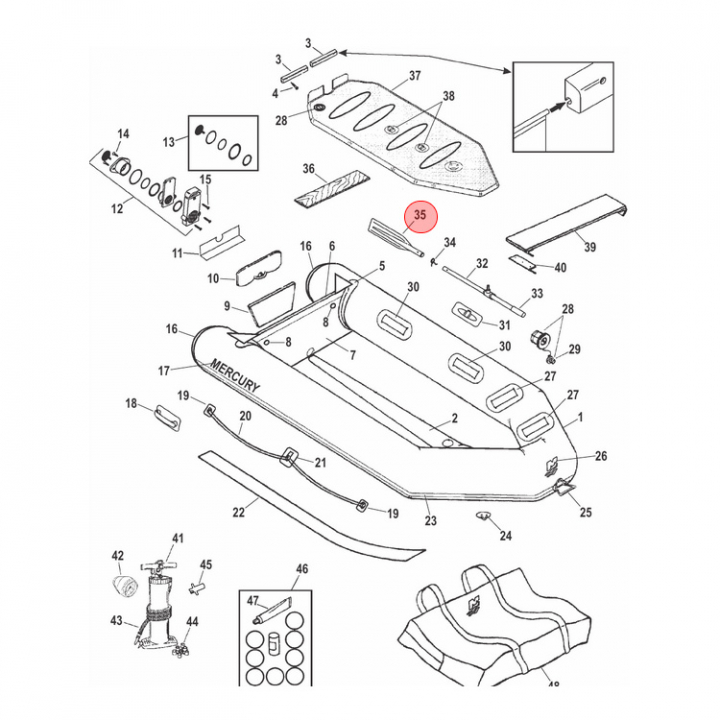 Årblad (883899002) i en ljusgrå färg till åror för Quicksilver gummibåtar. Titta i din epc för att säkerställa att delen passar just din motor. - Egenskaper