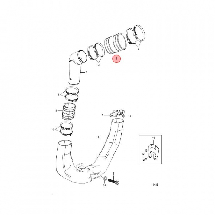 Avgasbälg (44348001) till Mercruiser motorer, bland annat Alpha och Bravo. Titta i din epc för att säkerställa att delen passar just din motor.