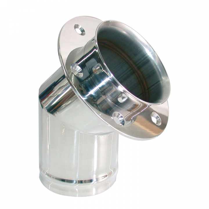 Stilrent och smidigt avgasrör/däcksgenomföring i elpolerat rostfritt stål.