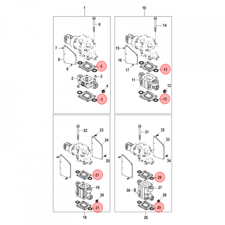 Packning (864549A02) till avgasknä (stängd kylning) på Mercruiser inombordare. Titta i din epc för att säkerställa att delen passar just din motor.