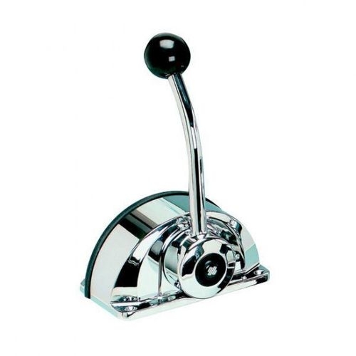 Toppmonterat, kompakt lågprofilreglagebox av kromad aluminium. Reglaget friläggs genom att trycka in knappen på sidan och påverkar då bara gaspådrag.