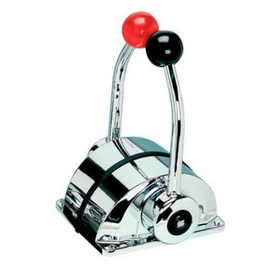 Klassiskt dubbelreglage för gas och växel. Kan monteras med X-12 startspärr för att förhindra start med växel i. Denna version har kromad aluminium men finns även tillgänglig i svartlackerad aluminium. Uppfyller EN ISO 11547 när den är monterad med X-12.