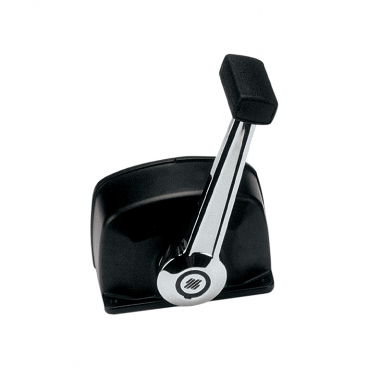 Svartlackerat engrepps-gas-/växelreglage med trimbrytare i spaken. Växelfunktionen kopplas från genom att dra ut armen. Kan monteras med 140X12 för att undvika motorstart i växel.