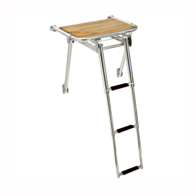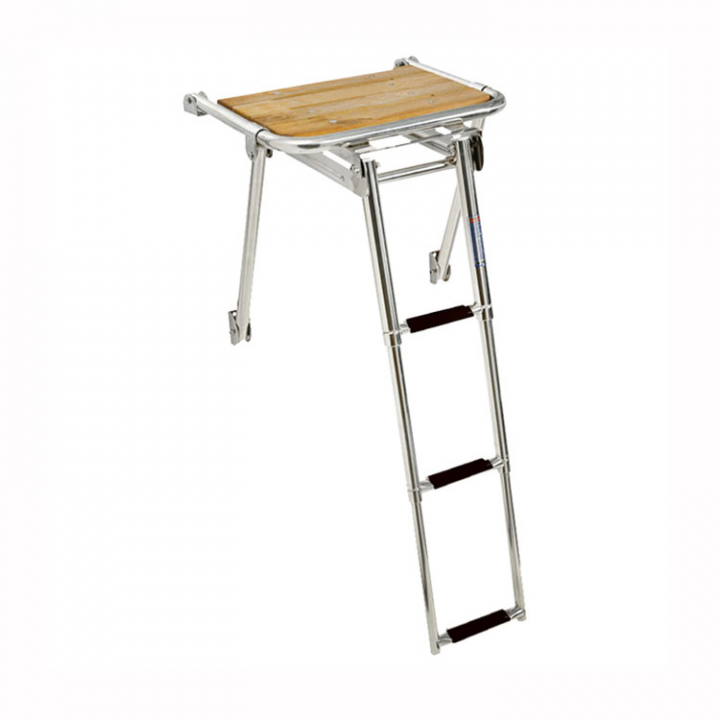 Stabil och snyggt utförd badplattform med 3-stegsstege.