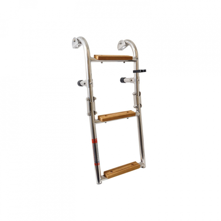 Rostfri badstege med teaksteg i två varianter.