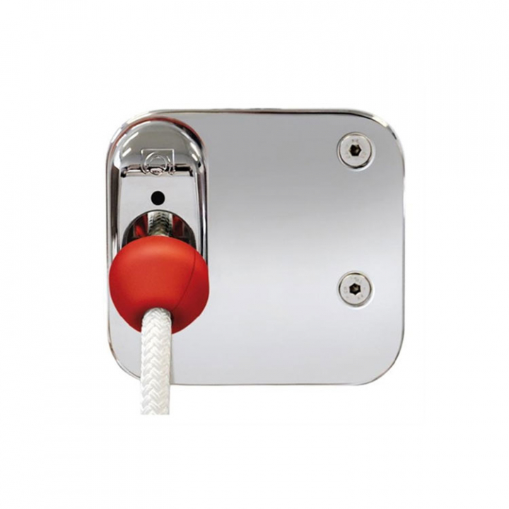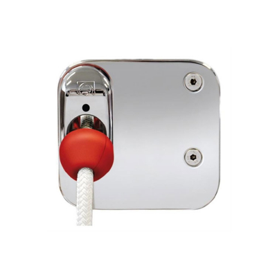 Skrovgenomföring för ankarspel, med linrulle och inbyggt säkerhetsstopp. Rostfri polerad skrovplatta ger en snygg och stadig montering. Med säkerhetsstoppet stannar ankarspelet automatiskt när ankaret är uppe.