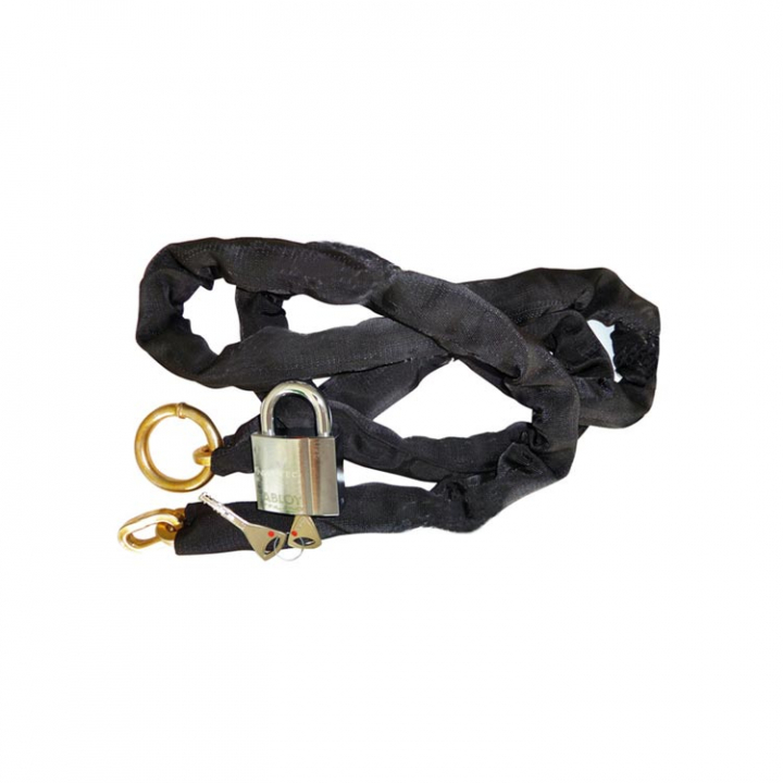 Båtlåspaket med Abloy PL340 Protec hänglås och Pewag (2,5m) klass 3 båtlåskätting med ring och strumpa. Paketet ligger snyggt förpackad i en robust plastlåda med handtag. Kättingen är tillverkad i Europa och har en kvalitetskätting i gulkromaterad stål med länkar i fyrkantsprofil.