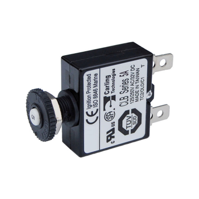 Blue Sea Termiska återställbara säkringar med flatstiftsanslutning, finns tillgänglig i 7st olika utföranden.