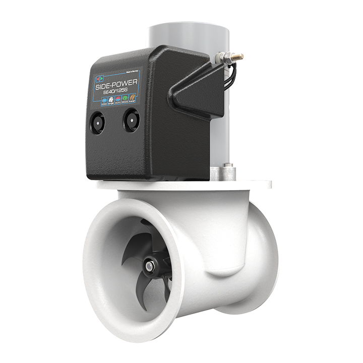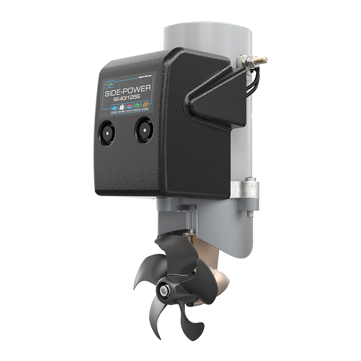 SE40 är en mycket kompakt bogpropeller med samma storlek som lillebror SE30 men med 10kg extra tryckkraft och samma höga energieffektivitet. Bakom skyddskåpan sitter huvudreläet och Side-Powers patenterade IPC enhet, som har som uppgift att övervaka systemets prestanda och drift. SE40 är beräknad för montering med trumma i bogen eller på akternspegeln med aktertrumma som finns i färdiga kit för enkel montering.