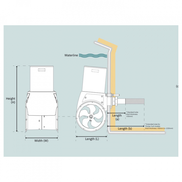 • Enkel att montera, upp till 150 mm skrovtjocklek, utan behov av GRP-arbete