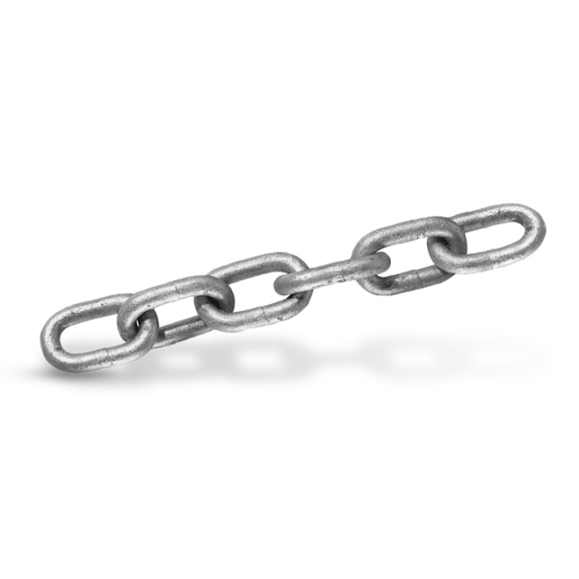Påsförpackad i kapade längder. Långlänkad, varmgalvad.