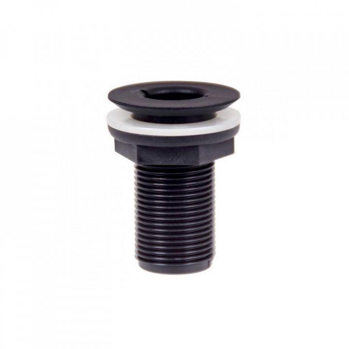 Svarta skrovgenomföringar i flera storlekar, för montering ovanför och under vattenlinjen. TruDesign har ett spännande program med glasfiberförstärkta polymerplastdelar för marint bruk.