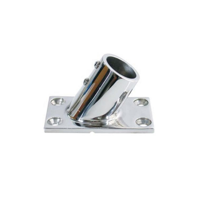 Fyrkantigt bottenbeslag i rostfritt stål med 60° vinkel till ledstångsrör i 2 dimensioner. - Egenskaper