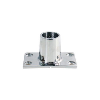 Fyrkantigt bottenbeslag i rostfritt stål med 90° vinkel till ledstångsrör i 2 dimensioner. - Egenskaper