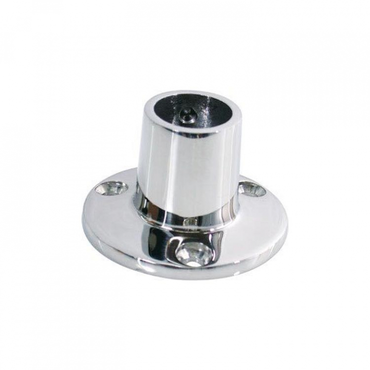 Bottenbeslag i rostfritt stål med 90° vinkel till ledstångsrör i 2 dimensioner. - Egenskaper