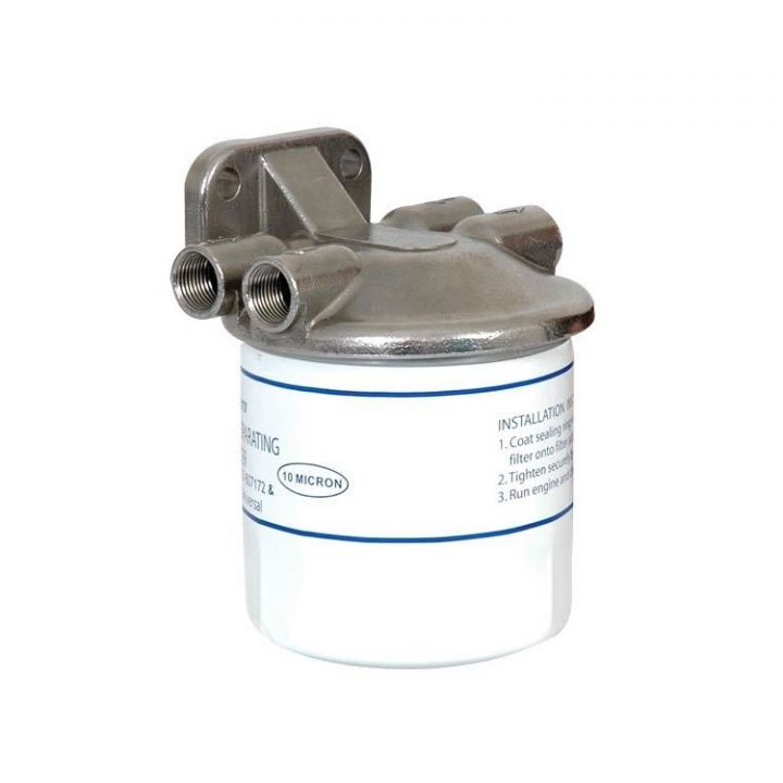 Easyner bensinfiltertopp med "twist-on"-filter. 10 micron filter med hållare i rostfritt stål, ger bra skydd för motor och munstycken. 10 micron-insatsen samlar effektivt upp partiklar och vatten från bensinen så att munstyckena inte förstörs.
