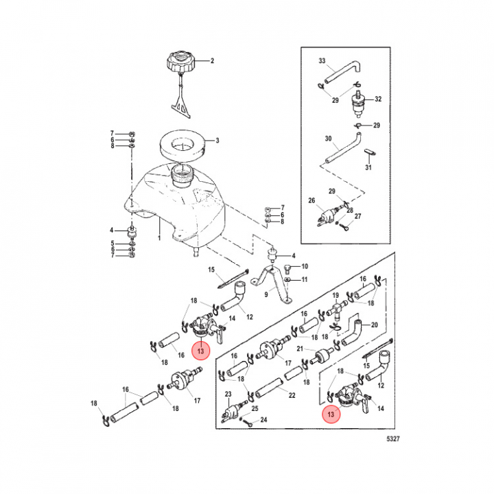 Bränslekran (815045) till Mercury 4-5 hk 2-takts utombordare. Titta i din epc för att säkerställa att delen passar just din motor. - Egenskaper