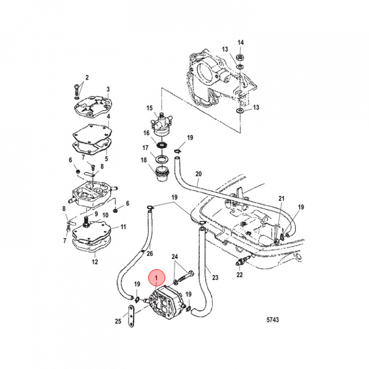 Bränslepump (853729A1) till Mercury 25-30 hk, 2-takt, 2-cyl utombordare. Titta i din epc för att säkerställa att delen passar just din motor. - Egenskaper
