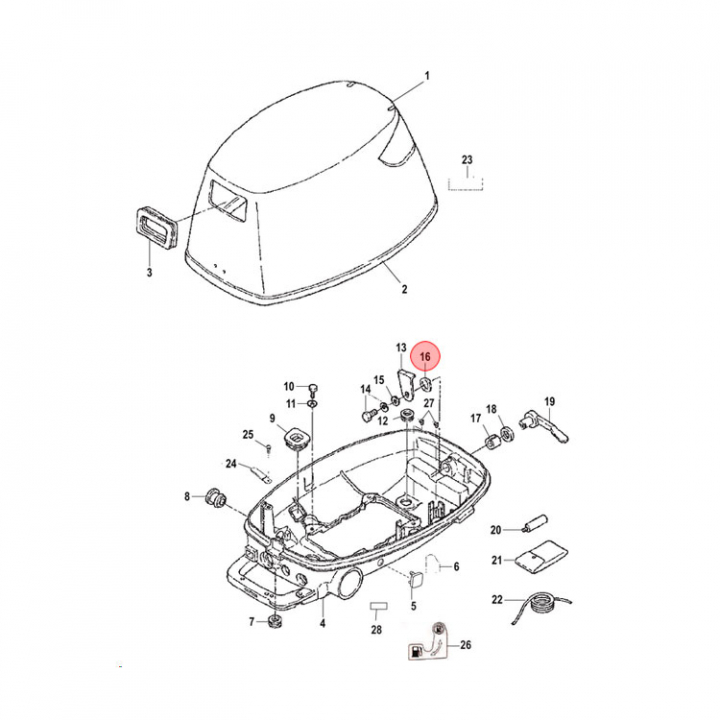 • Bricka (16221) till handtagsmekanismen för att få av motorkåpan med handtaget.