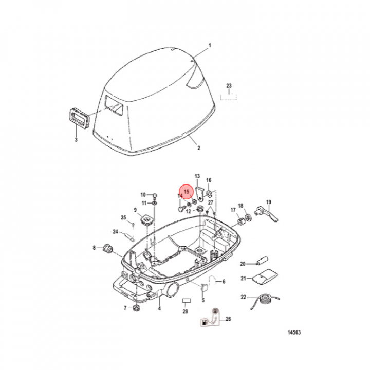 • Bricka (953921) till bland annat Mercurys låsning av kåpan (se extra bild)