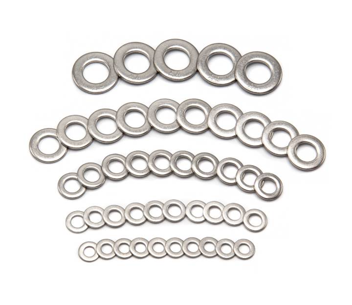Rostfri och syrafast bricka enlig DIN 125. I rullisten ser man förpackningsmängden som pendlar mellan 5st-1000st.