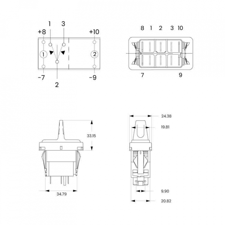 En mycket populär strömbrytare som används av många båtbyggare. Certifierade för tillfällig dränkning under tryck (frontpaneltätning).