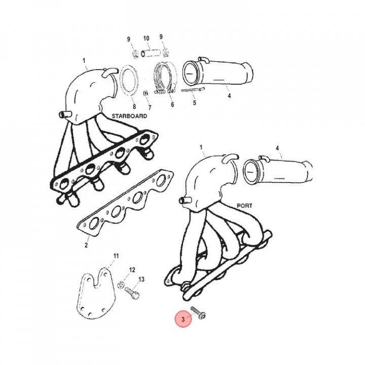 Bult (821131) till avgassystem/grenrör på Mercruiser motorer. Titta i din epc för att säkerställa att delen passar just din motor. - Egenskaper