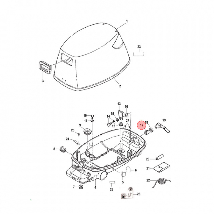 Bussning 4-50 hk (16220), bussning till handtaget (art 162181) för att lyfta av motorkåpan. - Egenskaper