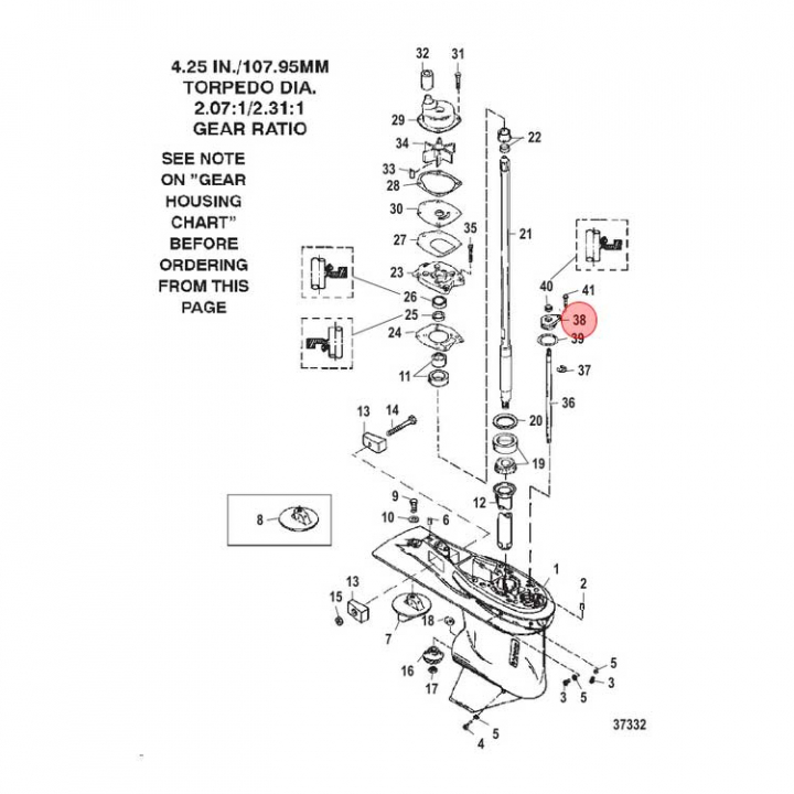 Bussningskit (43052A4) till växelhuset på Mercury/Mariner 30-125 hk. Titta i din epc för att säkerställa att delen passar just din motor. - Egenskaper