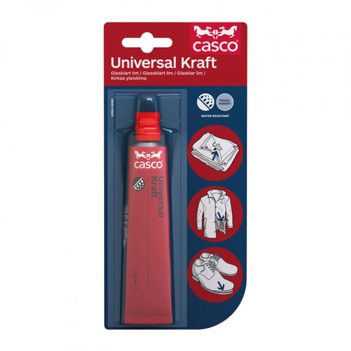 Universal Kraft är ett lösningsbaserat universallim som vidhäftar vid nästan alla material. Den är egentligen framtagen för att vara extra effektiv vid limning av PVC material men som sagt innan, limmar även trä, keramik, läder, metall, kork och mycket mer.