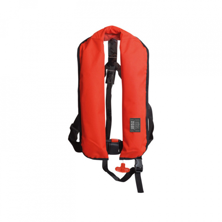 En helautomatisk uppblåsbar flytväst med kompakt och ergonomisk passform.
