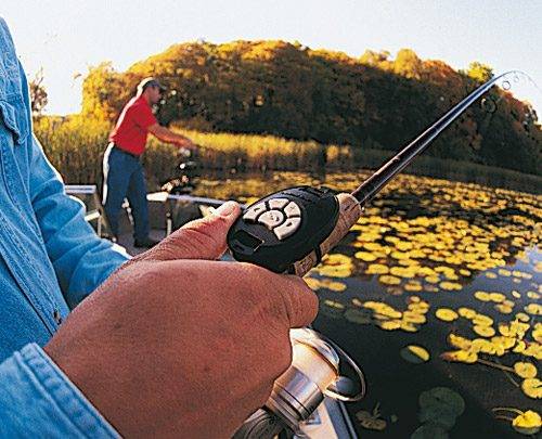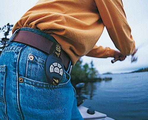 Den trådlösa lilla fjärrkontrollen CoPilot, som finns till PowerDrive, gör att det blir enkelt att styra motorn. Manövrera styrbord, babord, fram och back trådlöst. Montera fjärrkontrollen på spöhandtaget, runt armen eller i bältet, den är inte större än fjärrkontrollen till bilen.