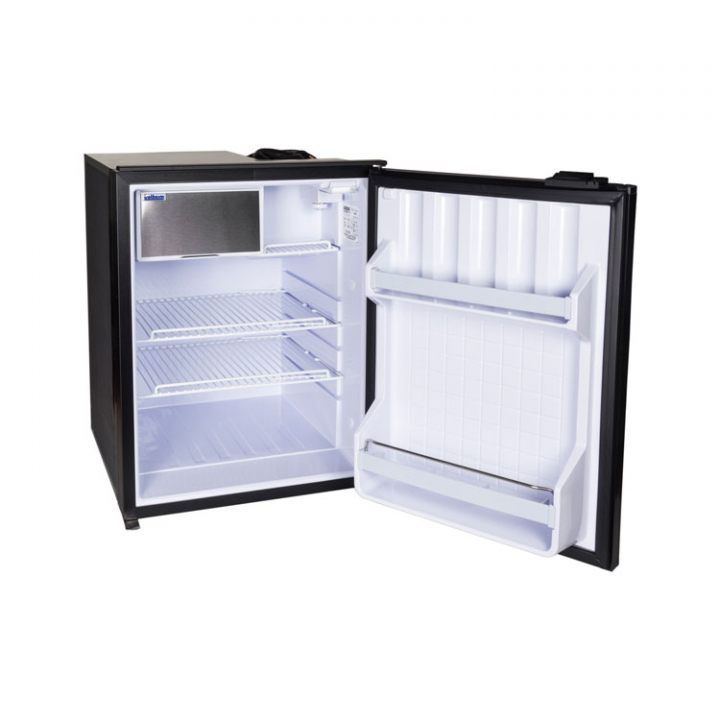 Du får: 12/24 V Danfoss/Secop-kompressor, intern frys och dörr med säkerhetslås och magnetlist.