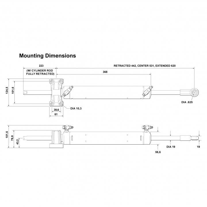 Cylindern har en drag- och tryckkraft på 110kg och lämpar sig till: