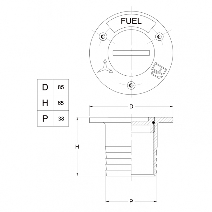 Däcksförskruvning "Fuel" 38mm