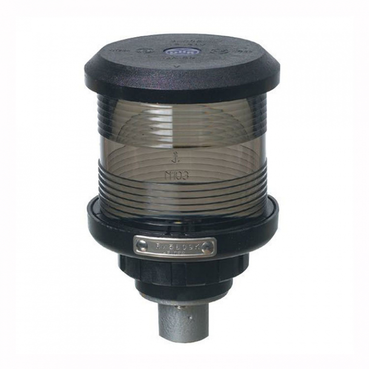 Denna signallykta har en 360° vit ljusvinkel, samt en 1/2" rörstos för montering.