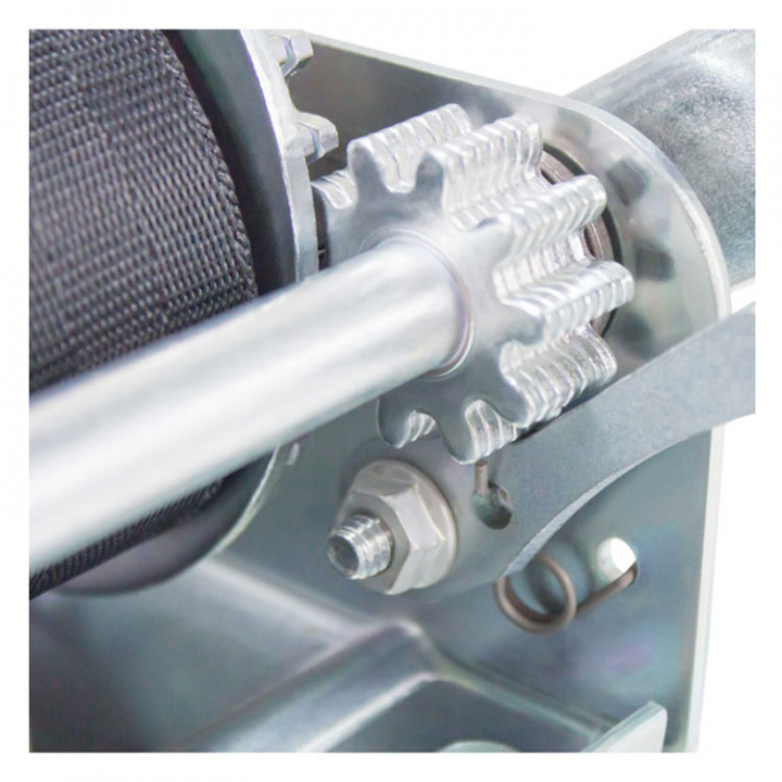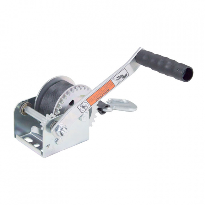 En standardtrailervinsch med 1 växel och 4,5 meter band med krok